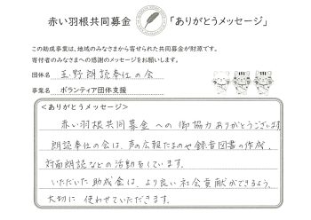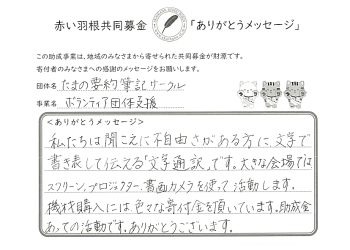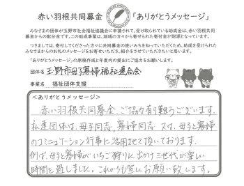 共同募金の助成金を受けて事業を行った団体・施設等から届いた「ありがとうメッセージ」をご紹介しています。(順不同)